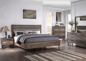 Queen and king bedroom furniture sets, expertly designed and crafted for luxurious comfort, include the bed, nightstand and dresser with mirror.